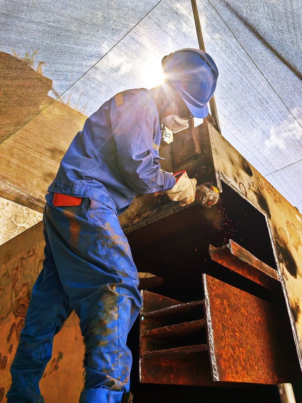 八月的太陽懸在大渡河上,燒得滿河皆沸,蒸騰起無邊的熱浪。夾江水工檢修和服務項目部的人馬,就釘在這片白熱的河灘上,釘在枕頭壩一級水電站左岸那巨大的鋼漂旁——迎峰度夏,電不可斷,他們的鐵骨要撐住這熱浪里的一切。 鋼漂之上,烈焰的儀式開始了。 焊槍點處,火花如萬千星子驟然炸開,飛濺著,滾落著。 李燕年輕,面罩后面汗流如注,直灌入眼角,卻也只能飛快地抬手一蹭,再迅速續(xù)上那滋滋作響的藍弧。他身上的藍色工裝早已濕透,顏色深一塊淺一塊,緊緊貼住脊梁。更添累贅的是那救生衣,尼龍帶子緊縛著軀干,猶如一層密不透風的厚殼,再套上安全帶,兩重束縛勒入皮肉。焊花偶爾濺落其上,竟發(fā)出細微的“嗤嗤”聲,冒起一縷青煙——是汗水被瞬間蒸騰了罷。 李繼剛說,這感覺像被架在蒸籠里,汗水無處可逃,只能在自己滾燙的皮膚上徒勞奔流。 頭頂烈日如熔金澆鑄,鋼漂表面早已炙烤得不可觸碰。姚鋼正帶人校準滑車軌道,他跪伏于鋼板上,皮膚隔著藍色工裝依然能感到那洶涌的熱力,汗水滴落,瞬間便了無蹤跡。安全帶沉重的金屬卡扣緊貼鎖骨,被灼燙的鋼板烘烤著,烙鐵一般。姚鋼偶爾直起腰喘口氣,粗重的氣息仿佛從滾燙的肺腑深處艱難拔出來,他抹一把臉,汗水便順著手臂滑下,在鋼板上留下一個極淺、又瞬間消失的濕印。高溫逼人,卻無人敢松開一絲系帶——水上作業(yè),性命便系于這滾燙的束縛上,如同系于一條灼熱的鐵鏈。熱浪噬人,而規(guī)矩亦如鐵律,咬嚙著人,卻也是唯一可依憑的盔甲。 河風也吝嗇得很,偶爾掠過,帶來的也是裹著水汽的悶熱。午后的陽光最毒,鋼漂上騰起扭曲的透明熱焰。輪班間隙,幾個身影便掙扎著挪到岸邊些許的樹蔭下,像渴水的魚。他們沉默地癱坐,藍色工裝上的汗跡凝成白色鹽霜,勾勒出后背脊骨的輪廓。我遞過冰鎮(zhèn)的汽水,瓶身沁出冰涼水珠,被他們一把抓過,仰頭痛飲,喉結急促地上下滾動。水珠混著臉上的汗一路滾落,滴在滾燙的沙石上,“滋”的一聲,連嘆息也來不及。 除銹打磨的活計在浮箱高處。鐵刷刮過陳年銹跡,卷起一片暗紅色的塵霧,混著人臉上淋漓的汗水,黏膩地撲向脖頸、鉆進領口,刺癢難當。汗珠順著眉骨淌下,流進眼角,腌得眼睛生疼,視野模糊。有人實在忍不住想抬臂擦汗,可手臂才動,安全帶便瞬間繃緊,提醒他此刻懸于半空——只得咬緊牙關,硬生生將抬起的手臂又按了下去,只把頭狠狠一甩,甩開那蟄眼的咸澀,繼續(xù)揮動手中的工具。汗流進眼睛的刺痛和銹塵鉆進脖頸的癢意,與安全帶勒住腰腹的悶脹感,共同織成一張難以掙脫的網(wǎng)。 黃昏漸近,西天熔金。巨大的浮箱梁終于穩(wěn)穩(wěn)嵌入預定位置。吊裝號子聲歇了,唯有大渡河水不息奔流,仿佛也帶走了幾分白晝的酷烈。汗跡在藍色工裝上凝成厚厚的白色地圖,記錄著每一寸被熱浪啃噬過的疆域。大家拖著灌了鉛似的雙腿,收拾工具,解開那浸透汗?jié)n、沉甸甸的救生衣和安全帶,身上被勒緊處留下深紅印痕,汗?jié)n處凝著鹽花。抬頭西望,晚霞正燒著天邊,壯麗得驚心動魄。對岸城鎮(zhèn)的燈火次第亮起,如星河墜入人間——那光,有我們汗水浸潤的溫度,有我們脊梁撐起的形狀。 熱浪如鐵,人亦如鐵。這鋼漂之上,每一滴汗水砸落,都化作焊花的一部分,熔鑄進這龐大機器的骨縫里。汗?jié)n斑駁的藍色工裝與救生衣,不過是我們寫給酷暑的另一種戰(zhàn)書——以血肉之軀,在烈焰之中,守護著電流奔涌的河床,守護著對岸那萬家燈火的清涼秩序。 此刻汗水的鹽霜,終將結晶為暗夜燈火的基石;那被灼烤的脊梁,正默默扛起一片清涼人間。 浮箱打磨補焊 |