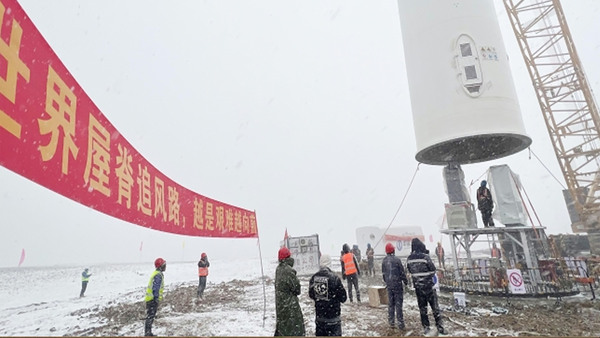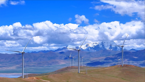 旭日東升,天色漸亮。喜馬拉雅山北麓海拔5000多米地帶,一個個高速轉(zhuǎn)動“大風(fēng)車”在晨曦中逐漸顯露英姿,巨大的葉輪嗡鳴著將陣陣狂風(fēng)轉(zhuǎn)化為潺潺綠電,通過輸電線路翻越崇山峻嶺、奔向城市鄉(xiāng)村……這幅現(xiàn)代綠色能源科技與牦牛羊群和諧共生的宏偉畫卷,正是中國電建集團(tuán)貴州工程有限公司以EPC總承包模式,在西藏措美哲古精心繪制的綠色發(fā)展新圖景,譜寫下貴州電建征戰(zhàn)世界超高海拔風(fēng)電、普惠民生的交響詩。